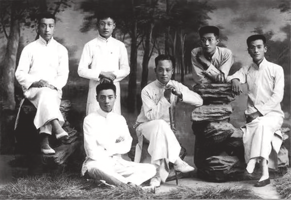 1917年9月,周恩来(后排右一)赴日本求学前与同学合影。