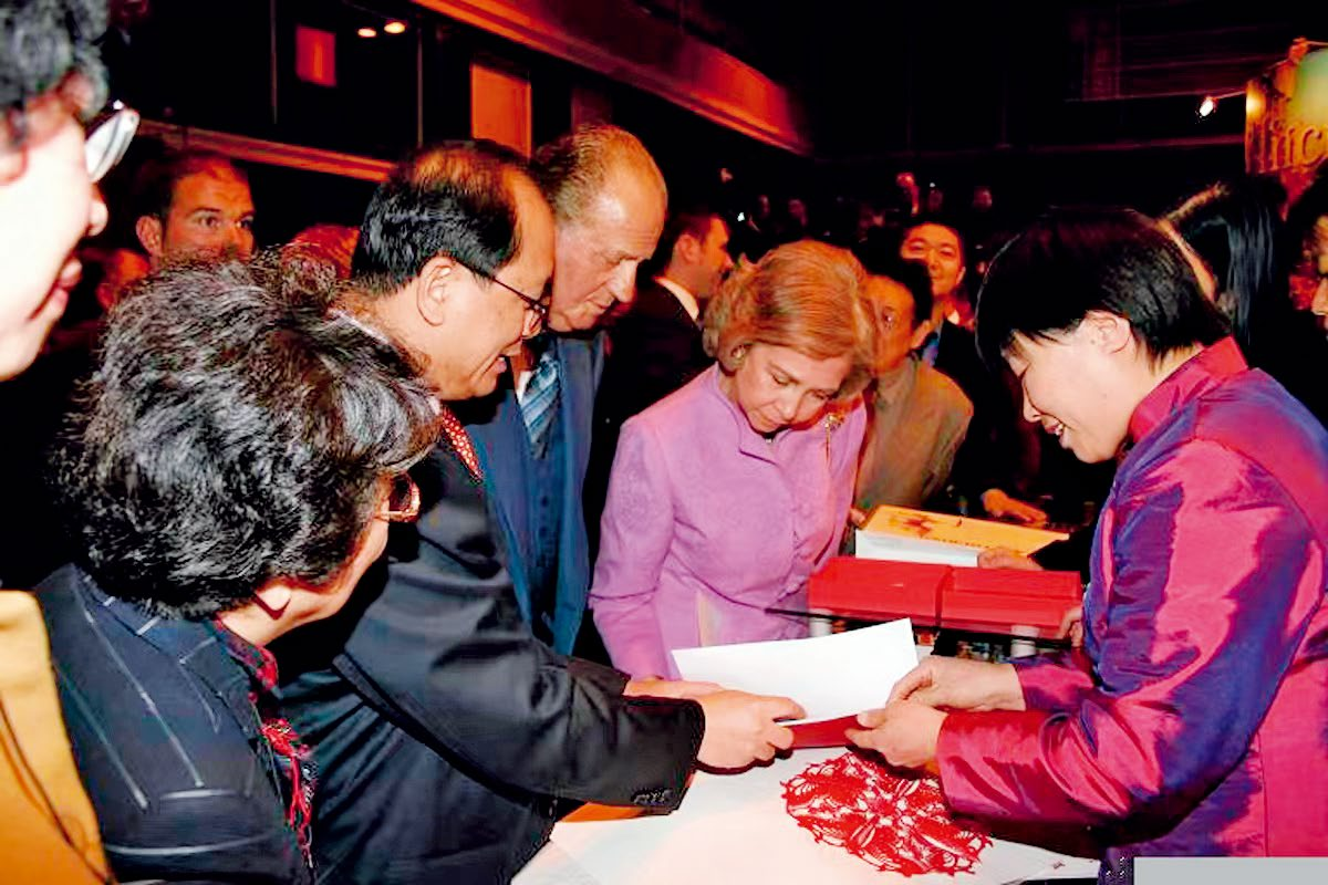 2004年,在西班牙马德里旅游展会上,石俊凤受邀为西班牙国王卡洛斯和王后索菲亚表演剪纸,赢得阵阵掌声,受到国王赞许。作品《龙祥图》还作为国礼,被时任中国驻西班牙大使送给了西班牙国王和王后。