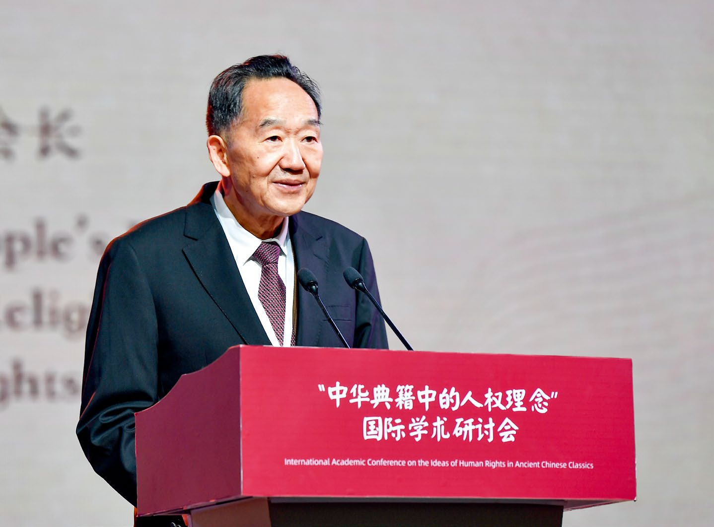 三是加强中国自文明起源到 1921 年人权史的研究。以史立论,是构建自主知识体系的基本问题。但由于长期受西方塑造的西方文明优于东方文明的叙事和“西方中心主义”认识论方法论的影响,国内外许多学人认为中国历史上封建社会只有专制、没有人权,何谈人权史。我们觉得这种认识是不客观不科学的。作为有百万年人类史、一万多年文化史、五千多年文明史的国家和民族,人文底蕴无比深厚,人权文明自在其中。首先,中国有宗教,但不是宗教国家,从来不以神为中心,而以人为中心。其次,在中国古代社会和传统文化中,一贯强调人最为天下贵、以人为本、爱人为大、对人施之以仁,这种仁者爱人、民为邦本、富民厚生的社会价值,以及天下为公、选贤与能、有教无类的治理观念,还有天人合一、协和万邦、万物并育的天下情怀,无不包含丰厚的人权理念。按照历史唯物主义和辩证唯物主义原理,既然有丰厚的价值理念,势必有相应的社会实践,也会形成一定的制度安排。几年前有一次我参加陪同领导同志访问以色列,在特拉维夫大学召开了一个有 19 位汉学家参加的座谈会,其中有两位洋教授介绍他们正在研究的课题,一个是关于宋代如何破解疑难杂症医案,以保障人的生命权健康权;一个是宋代如何在国家层面作出制度安排做好客死他乡人员的遗体遗骸收葬,以维护人的尊严。这让我们访问团成员深感意外,同时也感到深受启发。以上我讲的是一点肤浅的直观认识,只是说明我们对中国人权史总体上还研究不深、知之不多。所以举办这次“中华典籍中的人权理念”国际学术研讨会,邀请中外专家一起从典籍中寻迹、从理念上破题,然后走向对实践、对制度和对成效的研究。
