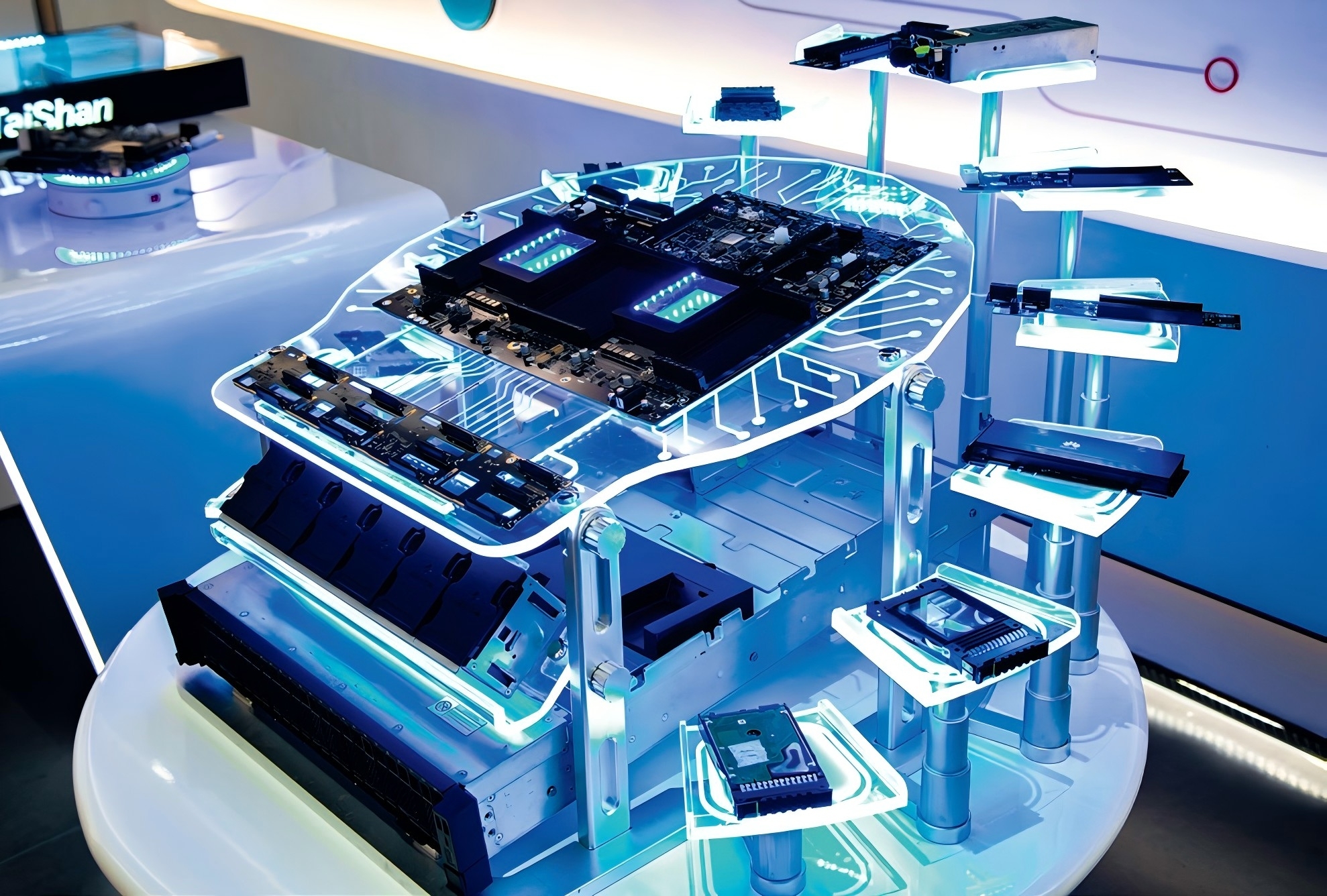 2022年1月10日,华为成都鲲鹏生态基地内展示的相关芯片与核心技术。视觉中国/供图