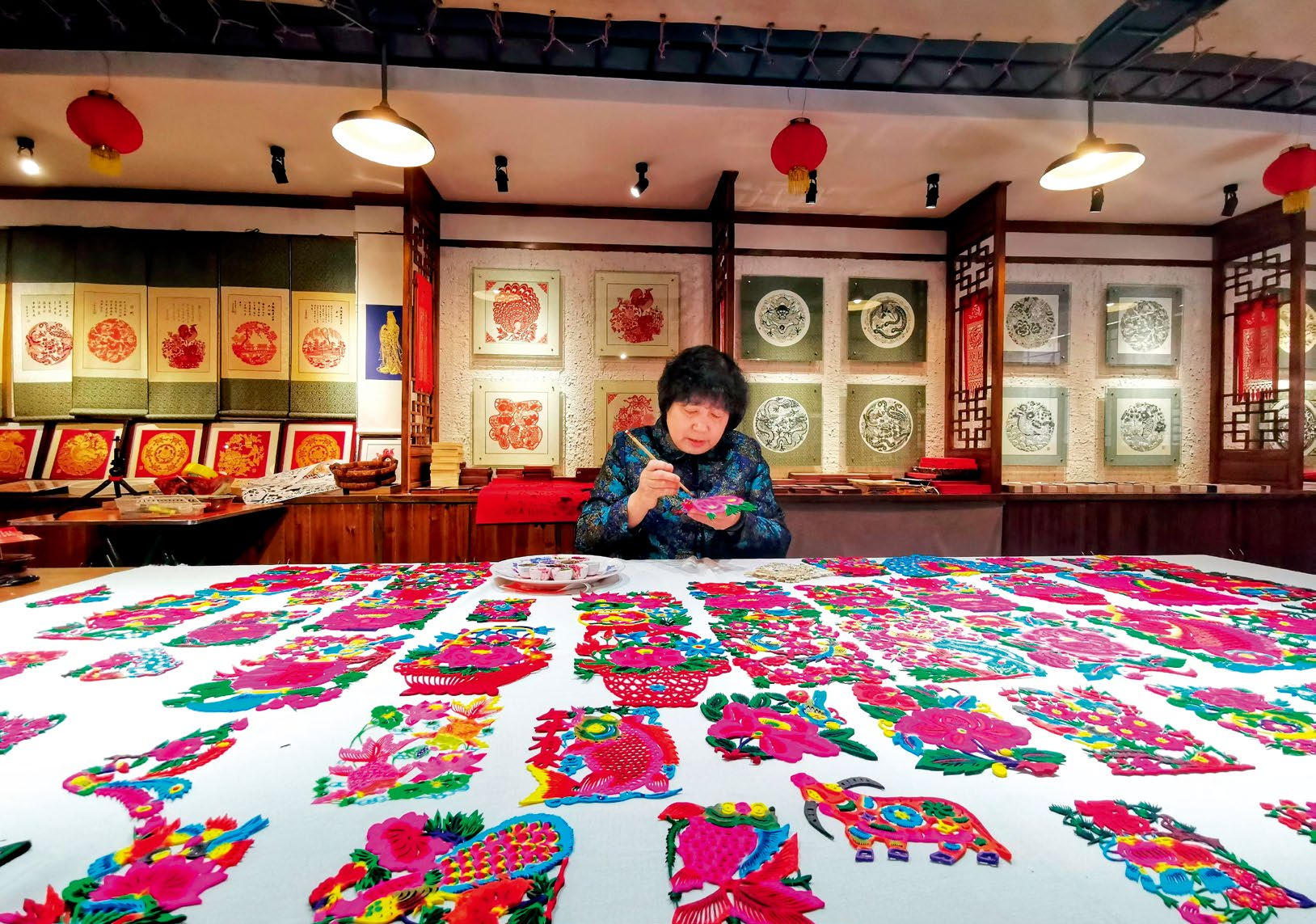 “有!”喜出望外的小夫妻立即拿出剪纸作品,供外国游客挑选。没想到,外国游客一次就买走了100多元的剪纸。要知道,当时小两口的月工资加起来也不到100元。