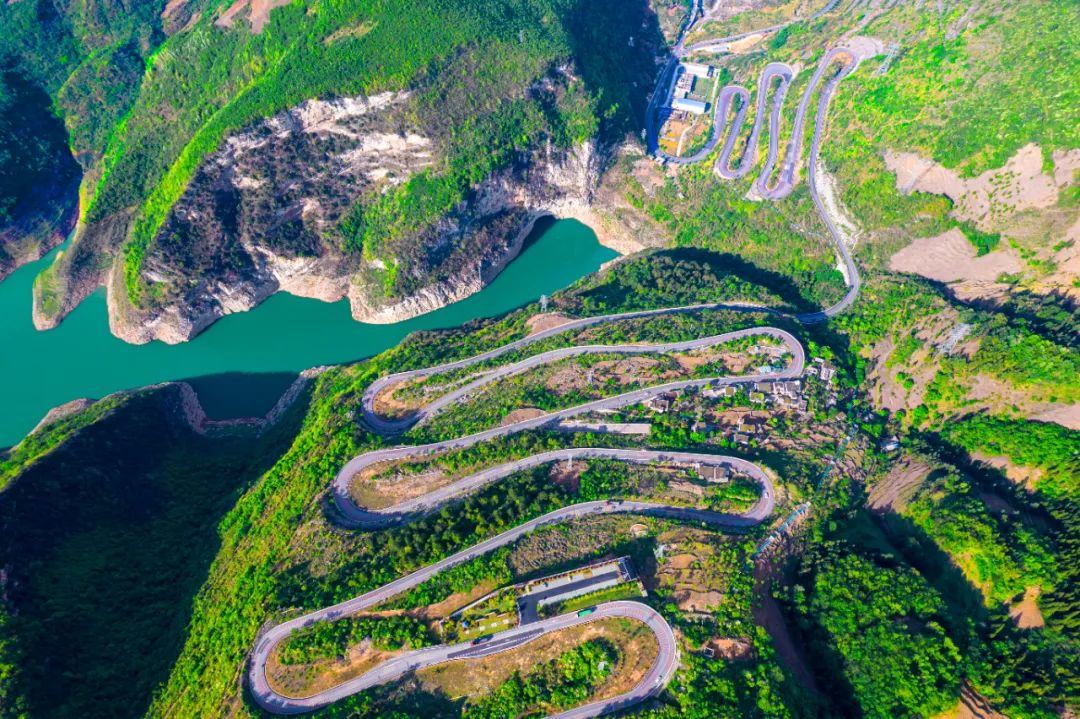 2024年4月19日,贵州省毕节市织金县八步镇境内,321国道在大山之间蜿蜒盘旋。中新社发 史开心/摄
