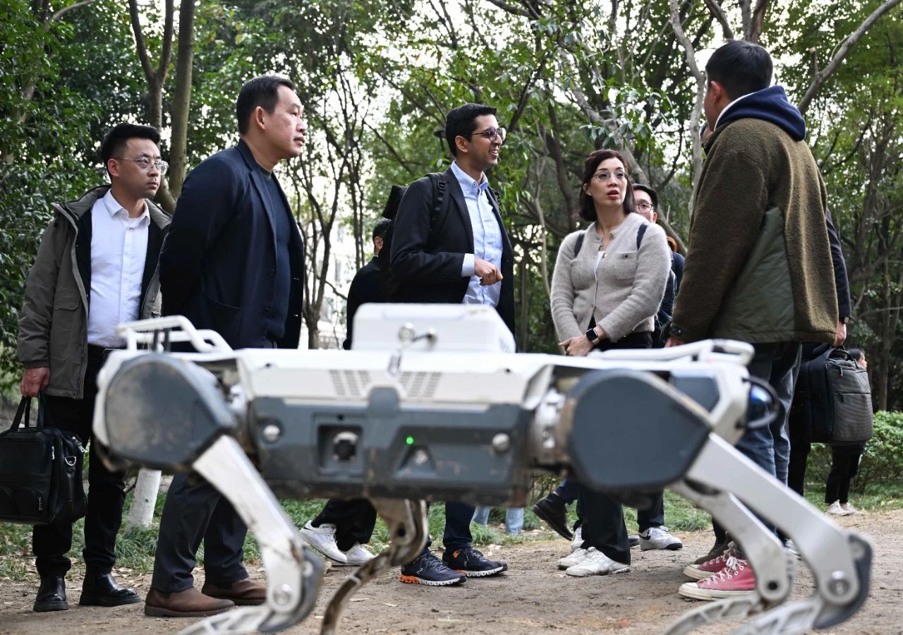 此外,杭州未来科技城在未来领域的技术突破与产业转化也在持续迸发活力:灵伴科技推出重量仅49克的新一代AR眼镜亮相第137届广交会;程天科技近期已完成B轮近亿元融资;申昊科技研发的“机器狗”在茶园实现智能化作业;迅蚁科技不断拓展城乡无人机外卖配送网络,推动低空智慧物流新业态发展……