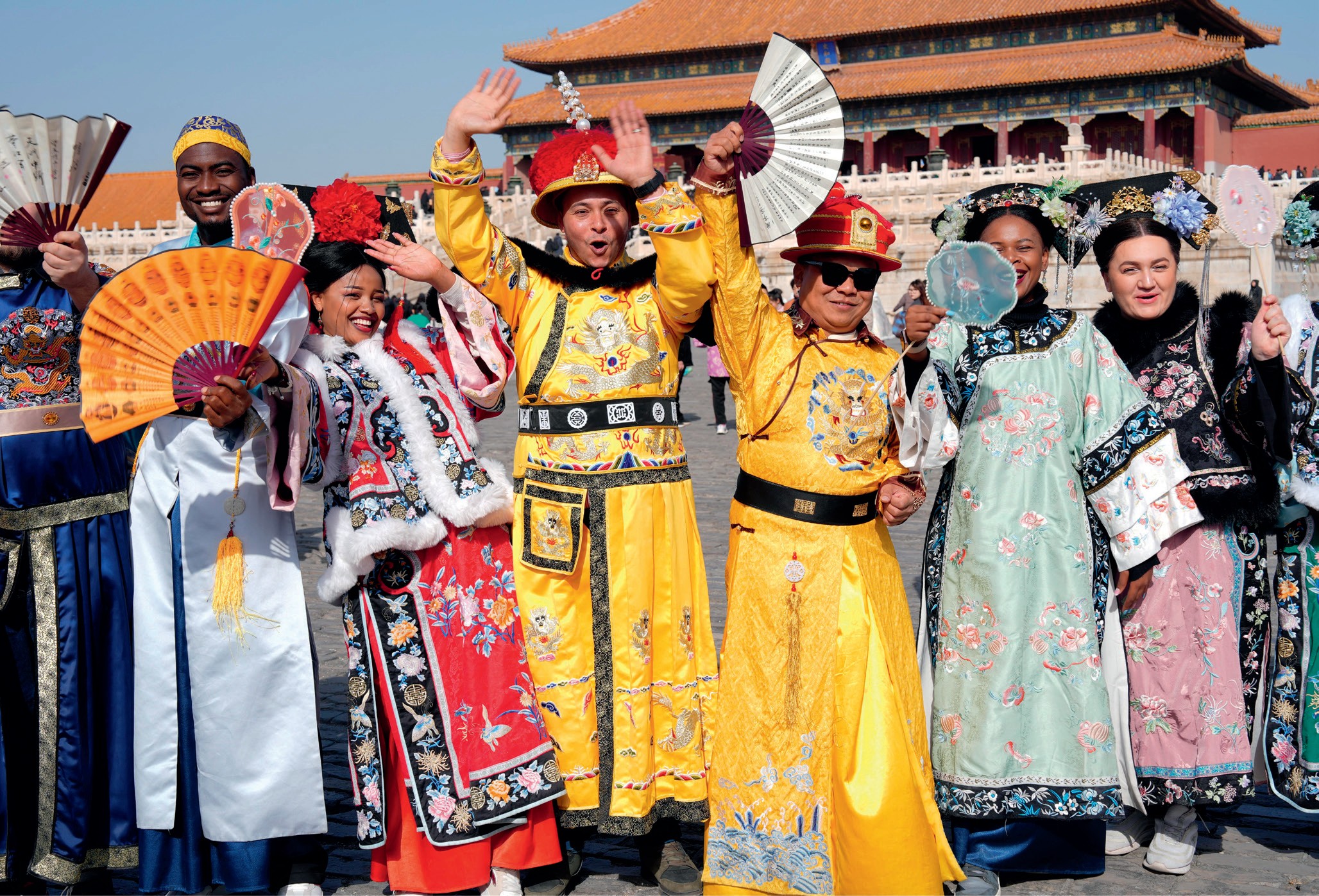 “嗨·中国”北京行。国际友人身着清代服饰游览故宫。