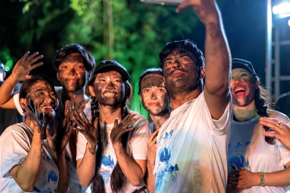“嗨·中国”云南行。国际友人参与普者黑传统“花脸节”。
