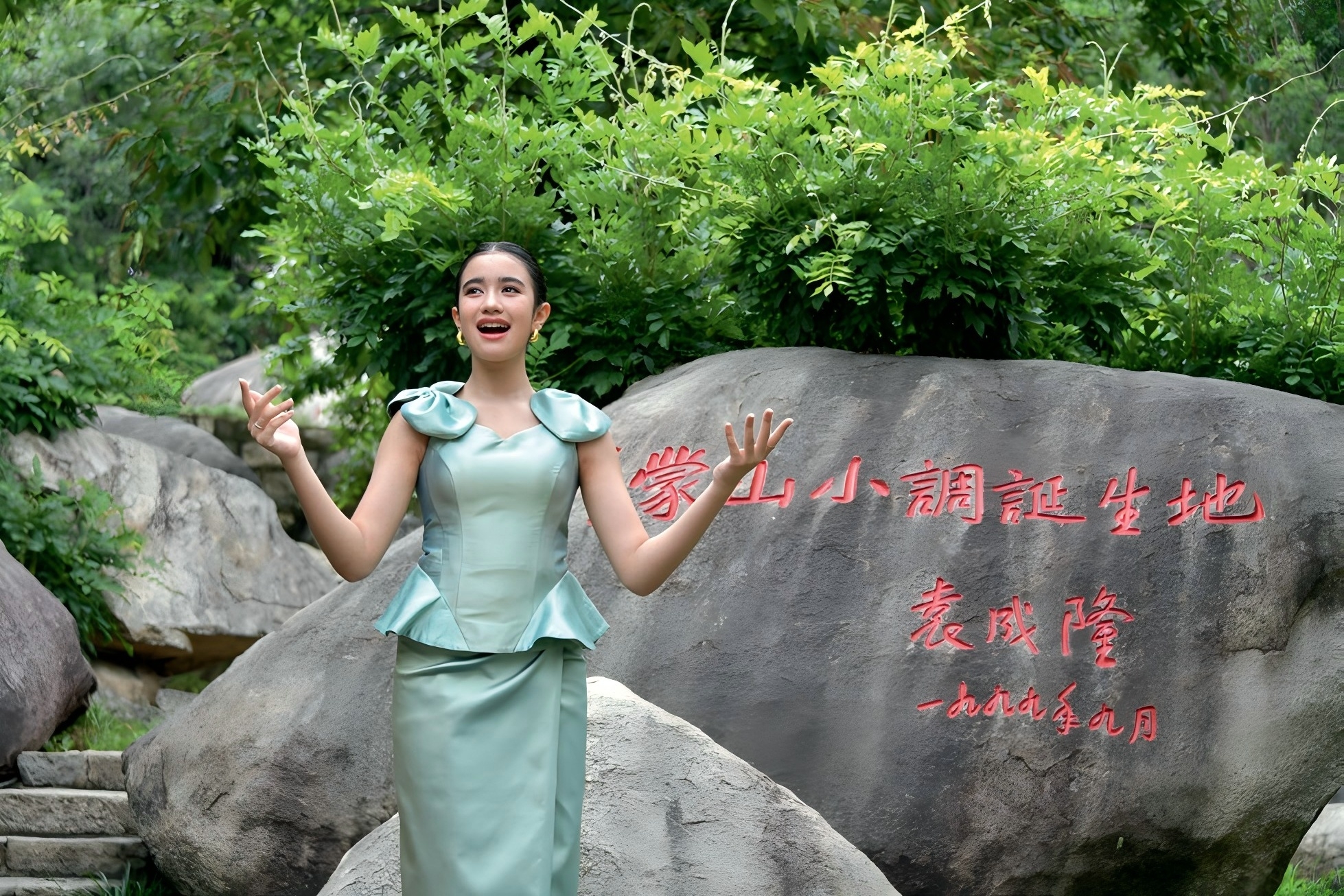6月28日,山东临沂,珍娜公主在费县《沂蒙山小调》诞生地演唱《沂蒙山小调》。视觉中国/供图