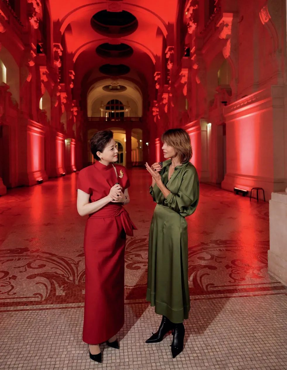 2024年,在法国巴黎举办的“新生万物——中国非遗与当代设计展”上,杨澜与法国演员苏菲·玛索交流。