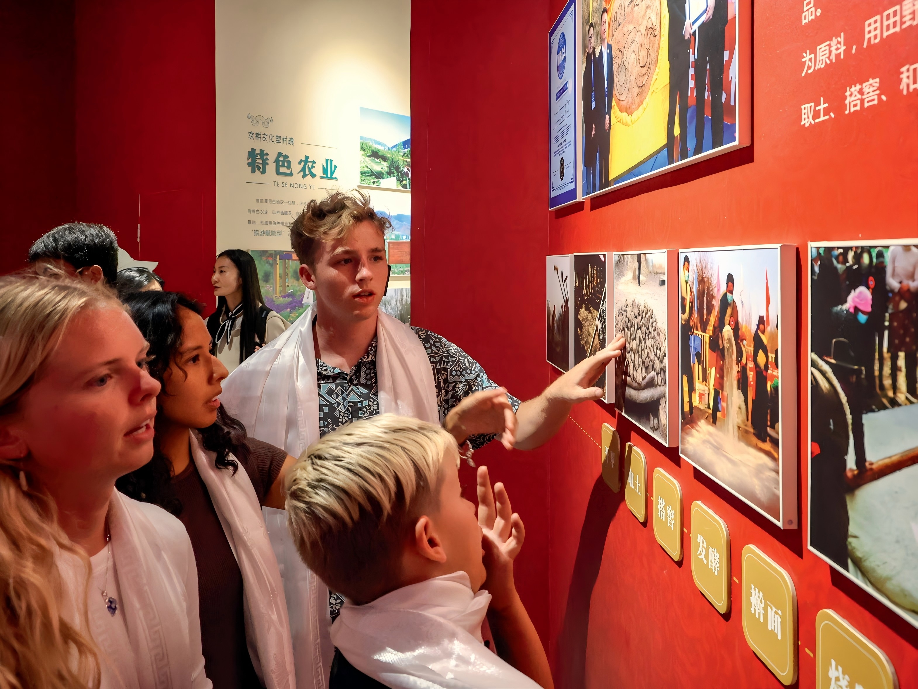 美国犹他青少年参观青海黄南州尖扎县德吉村村史馆。杨晓冬/摄