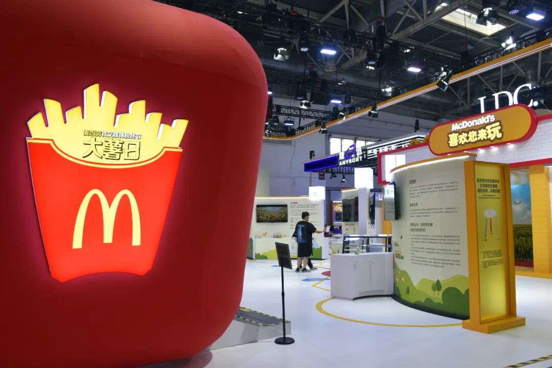 7月20日,麦当劳中国携手首农集团、宾堡、顺新晖等11家供应商伙伴首次以中国“麦链”形式亮相第三届链博会。视觉中国/供图