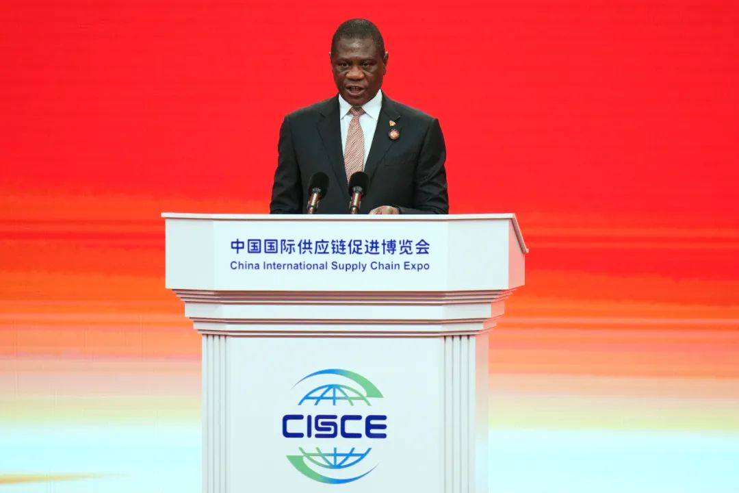 7月16日,南非副总统保罗·马沙蒂莱在第三届中国国际供应链促进博览会开幕式上发表演讲。视觉中国/供图