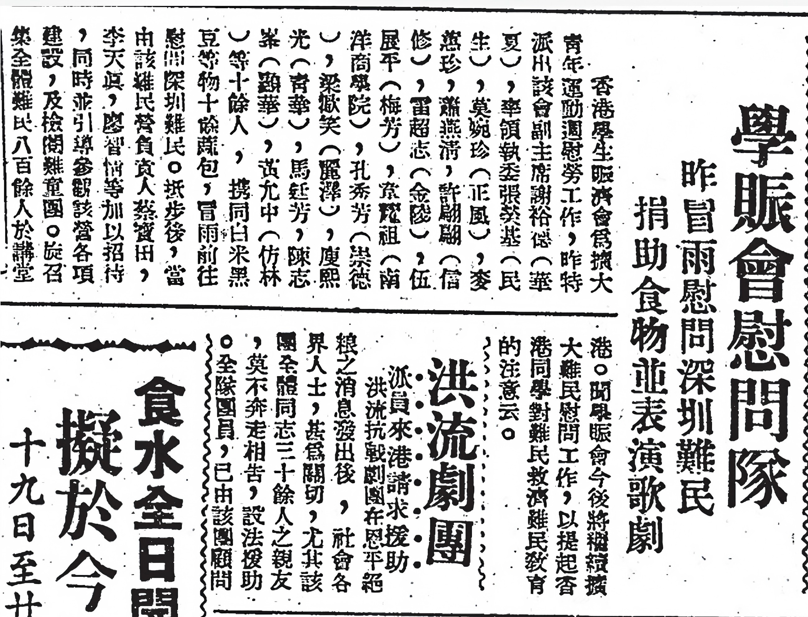1939年5月22日,香港《大公报》报道学生赈济会慰问深圳难民。